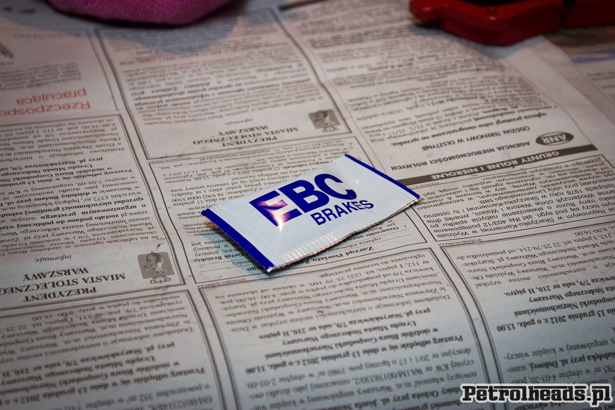 Ale do rzeczy: otóż te klocki EBC chodziły w prowadnicach tak lekko że się zastanawiałem czy nie będą się telepać - chodziły swobodnie i leciutko, ale luzu nie było więc nie telepią. A dodatkowo w pudełku znalazłem taki oto woreczek ze smarem miedzianym do posmarowania prowadnic klocka: