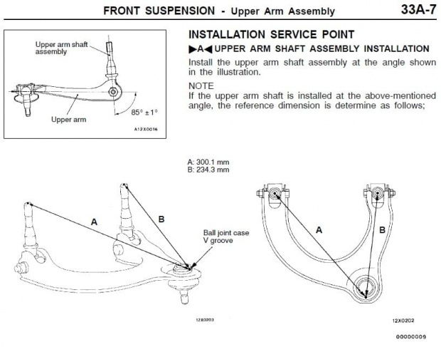 Kurcze czy odległości od bolcy tulei wahaczy przednich górnych do znaczników (A-300,1 mm i B-234,3 mm) ustawia się do znacznika na sworzniu czy na wahaczu, bo w manualu nie do końca wyraźnie widać?