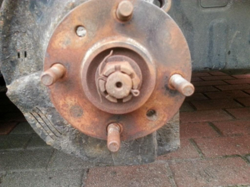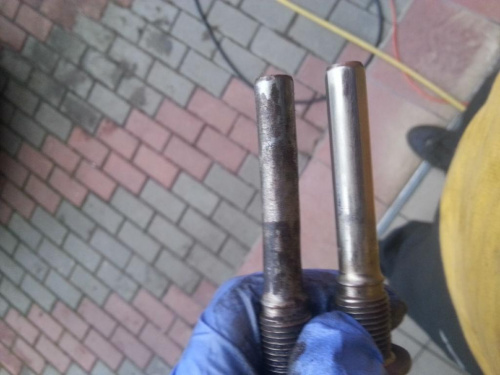 Jednak nie to mnie martwi, okazało się że z prawej strony jedna ze śruby/sworznia była przez jakiegoś rozgarniętego mechanika "tuningowana"-ręce opadają, nie wiem czy jemu pękła, czy jak, ale ktoś postanowił naspawać trochę materiału i zeszlifować go na szlifierce stołowej , zresztą zdjęcie ukazuje precyzję wykonania