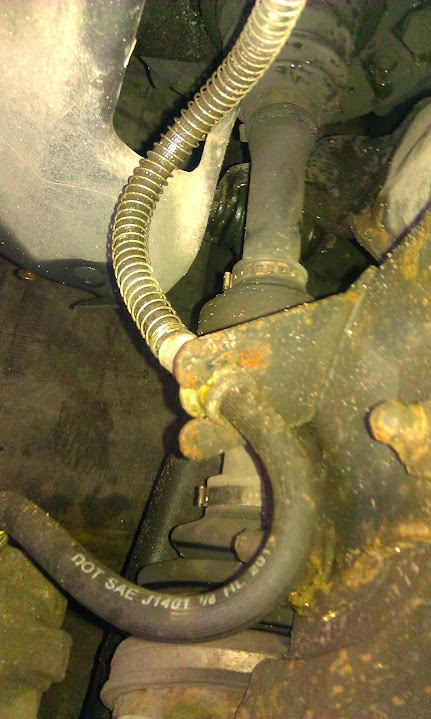 Wkładamy przewód od czujnika ABS i przewód hamulcowy. Montujemy zabezpieczenie.