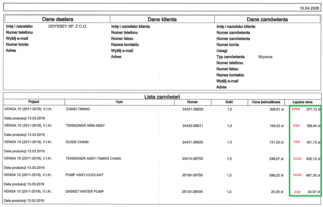 Dzisiaj przy okazji odbioru gumek prowadnic zacisków przednich dopytałem o części rozrządu w ASO.